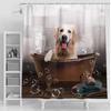 Cats and Dogs Shower Curtain Raining Cartoon Corgi Cute Animal Hilarious Pet Playing Water Polyester Waterproof Bathroom Curtain