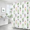 Small Fresh Plant Cactus Leaves Print Shower Curtain Polyester Fabric Bath Curtain With Hooks Curtains For Bathroom Decoration