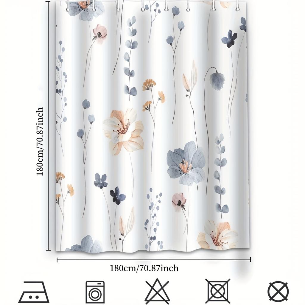 Watercolor Floral Shower Curtain,Mint Green Beige Flower Shower Curtain for Bathroom,Modern Minimalist Waterproof