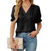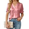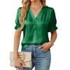 Women's Fashionable Casual Solid Color V Neck Short Sleeved Top Short Sleeved Top