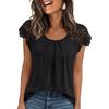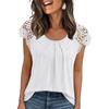 Summer Women's Lace Sleeve Hollow Short Sleeve Round Neck Loose T-shirt