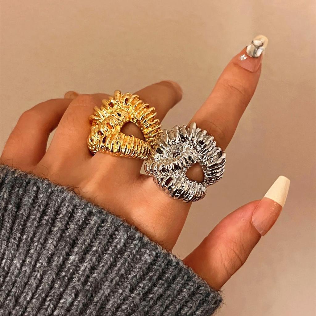 Vintage Hyperbole Irregular Metal Lava Textured Open Rings for Women European American Chic Exquisite Party Jewelry Accessory