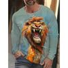 Funny Animal Design Retro Men 3D Printing Street Casual Daily Gray Longsleeved Round Neck Shirt Spring and Autumn Clothing