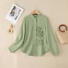 ZANZEA Women Casual Stand Collar Loose Long Sleeve Embroidery Blouse