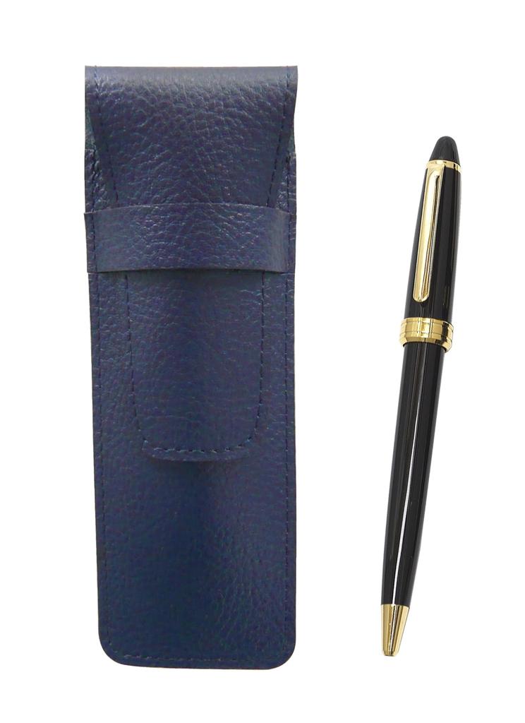 Blue Grained Leather Pen Case with Neo Ballpoint Pen Set D-600 (black) SASL-600B-B