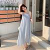Blue Small Fresh Seaside Romantic Long Dress Summer New Romantic Neck Dress Women