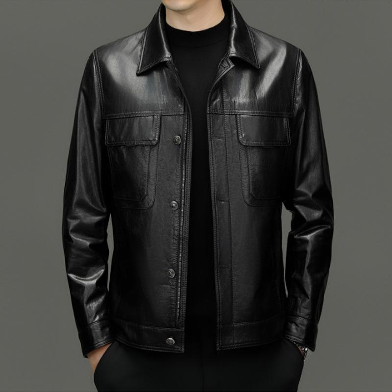 Cowhide Leather Jacket Men's Autumn and Winter New Fashion Casual Locomotive Leather Jacket Top Coat