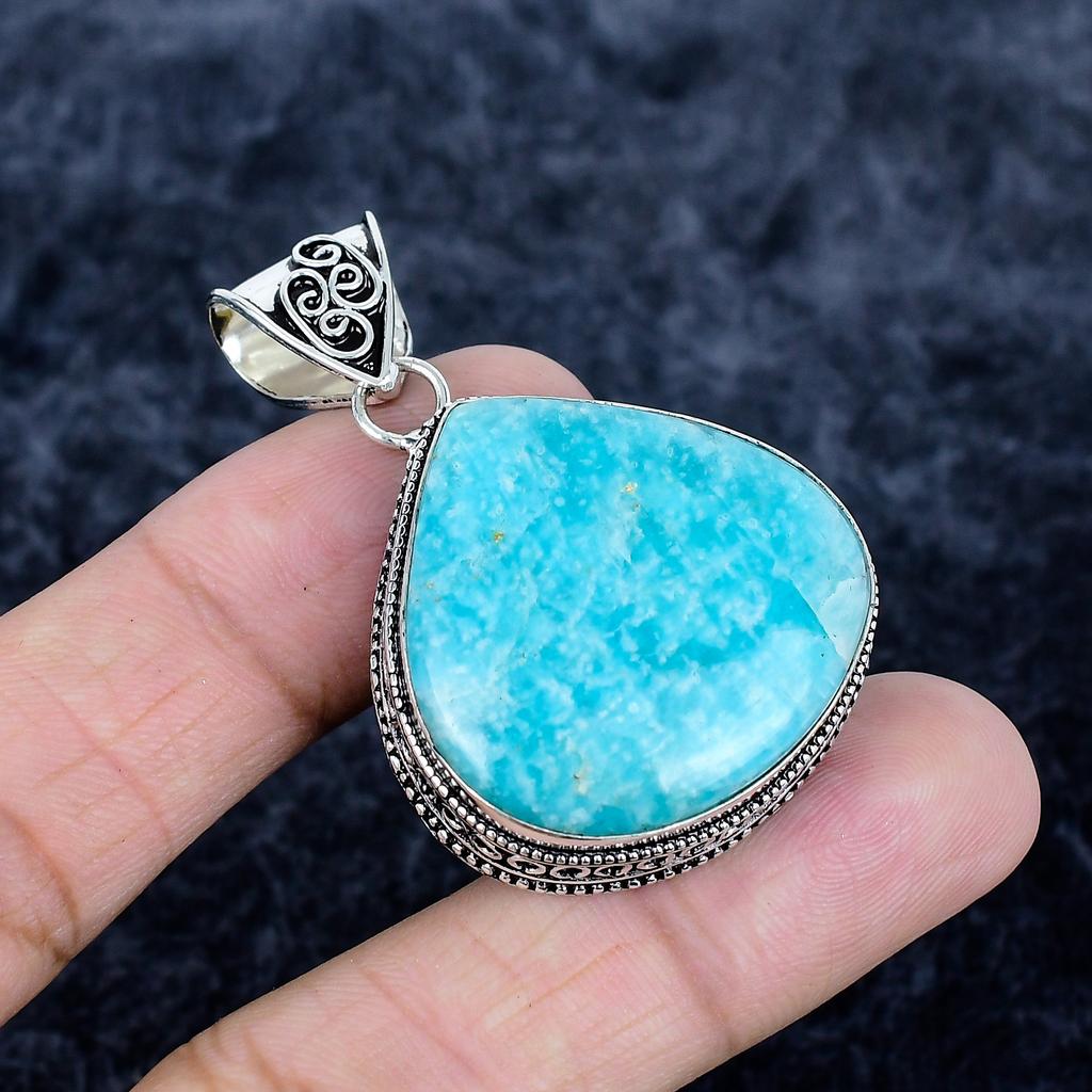 Amazonite Gemstone Handmade 925 Sterling Silver Jewelry Pendant 1.97" MM-3415