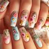 Square Press On Nails Flower Fake Nails Stick On Nails In 12 Sizes 24 Pcs French Nails Tips for DIY Nail Art Decorations
