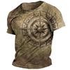 Vintage Compass T-Shirt for Men 3d Navigation Printed T Shirts Street Hip Hop Tops Short Sleeve Tees Shirt Men Clothes Shirt