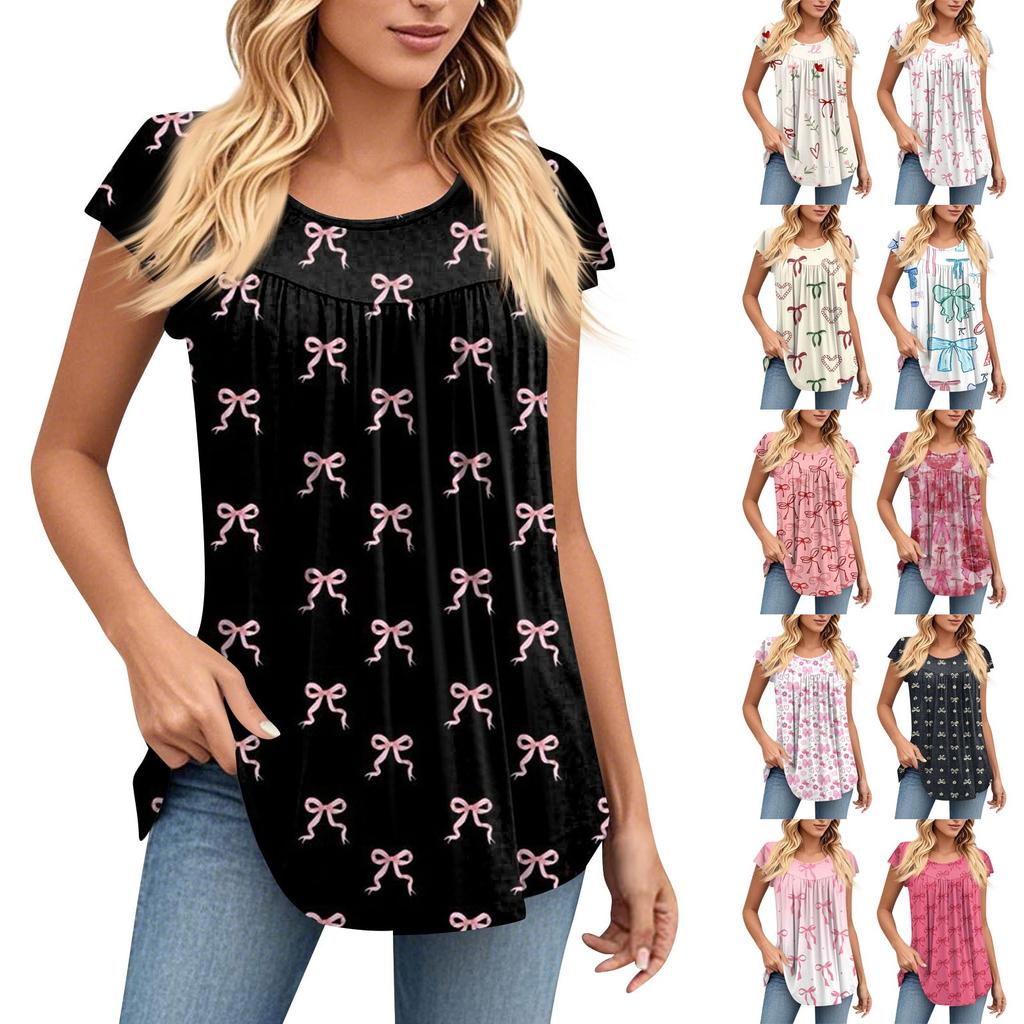 Women's Round Neck Short Sleeve Mid Length T-Shirt Loose Casual Short Sleeve T-Shirt Top