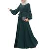 Muslim New Women's Solid Color Fashion Casual Long Sleeve Ruffle Dresses