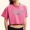 Diamond Style Boston Printed Washed Crop T-Shirt Women Summer O-Neck T Shirts Cotton Short Sleeve Casual Slim T Shirt