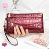[Zipper Clutch with Coin Storage] Elegant Crocodile Pattern Faux Leather Wallet with Wristlet, Envelope and Zip Pocket, Fashionable Long Clutch