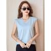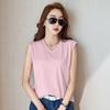 2024 Summer New V-neck Sleeveless Vest Mercerized Cotton T-Shirt Women's Slim Thin Versatile Simple T-shirt Top