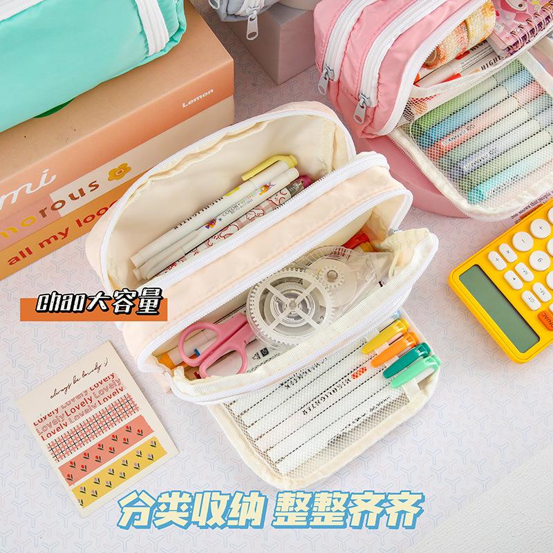 Front Window Stationery Box New Student Pencil Case Ins Large Capacity Simple Girl Cosmetic Bag Storage Bag Pencil Case