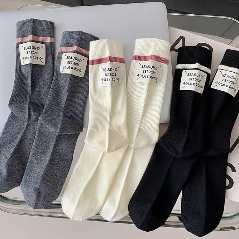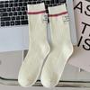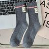 Multicolored Wool Mid-calf Socks for Women In Autumn and Winter, Thickened and Warm Striped Heels with Fabric Labels