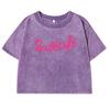 Pink Butterfly Art Letter Prints Washed T Shirt Women Summer Cool Tshirts Cotton Tee Clothes Retro Short Sleeve Female