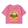 Women'S Cotton Crop Tops Distressed O-Neck Washed T-Shirts Roses And Guns Printing Short Sleeve Street Clothes