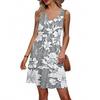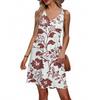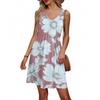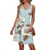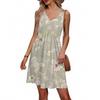 Women's Summer V-neck Casual Beach Vacation Style Retro Floral Print Sleeveless Patchwork Dress