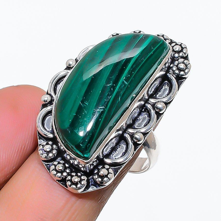 Malachite Gemstone Handmade 925 Sterling Silver Jewelry Ring Size 7 SU-10444