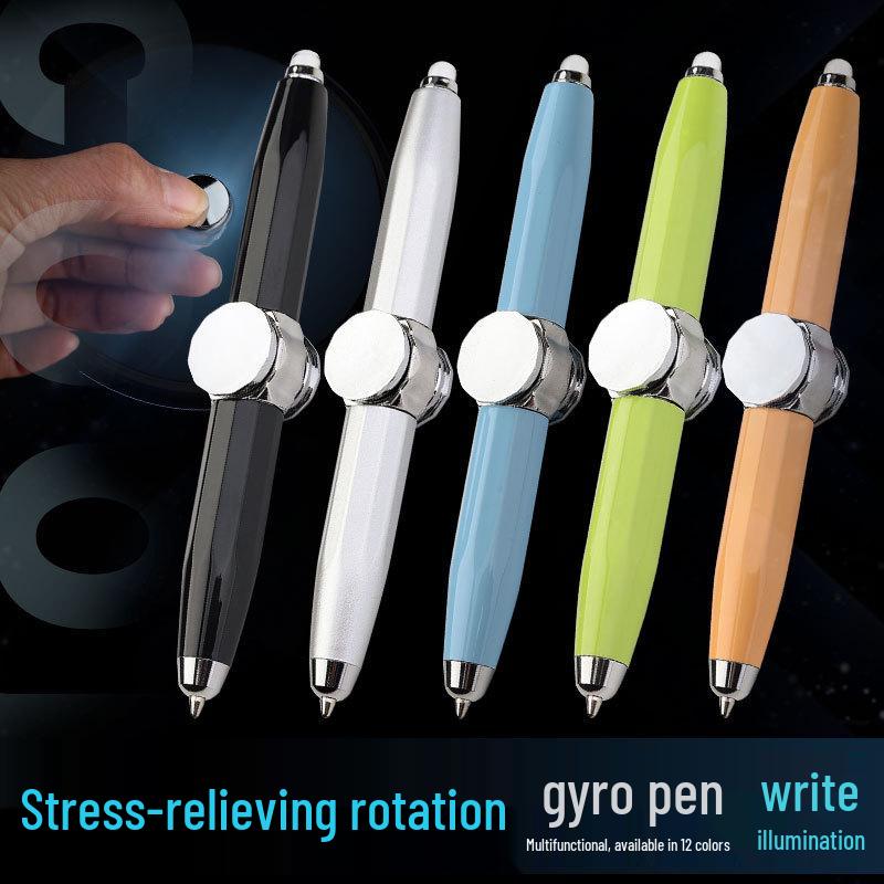 Creative Luminous Multifunction Spinner Pen with LED Light – Writable Decompression Ballpoint.