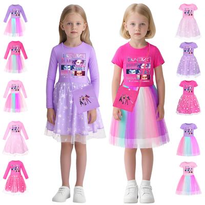 Kids Girls Anime Cartoon KPop Super Star Singer Printed Sleeveless Bow Casual Party Princess Dress Halloween Cosplay Costumes
