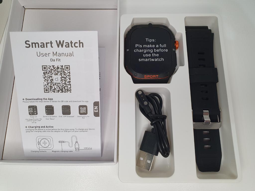 Smartwatch Da Fit Sport at a smart price 🔥 Character on the wrist Brutal case, large 2.01″ TFT screen, stylish design. Activity tracking, heart rate, steps, smartphone notifications — everything is clear, visual, to the point, and always at hand. Lightweight, comfortable, don't weigh down the hand, with a reliable strap — suitable for both sports and city wear. Connect quickly to the phone via the Da Fit app and work with both iOS and Android. 350 mAh battery. Equipped with a flashlight. A versatile option for everyday use. Includes magnetic charging cable and instructions. I recommend!