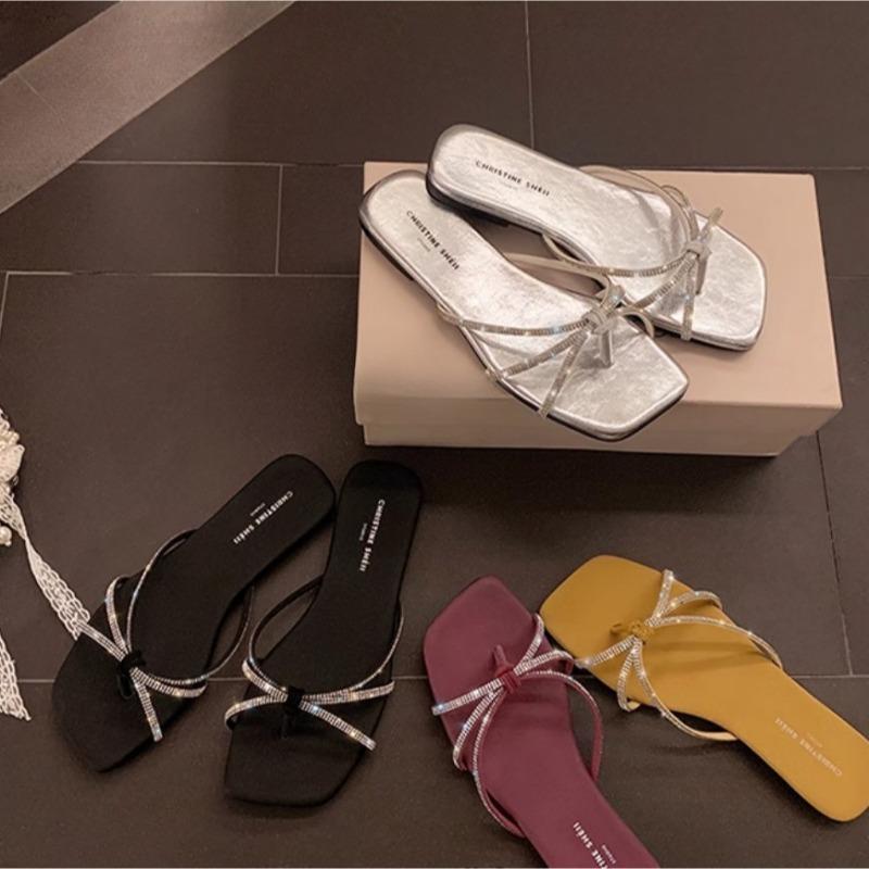 Water Diamond Shoes Thin Flat Flip-flops Women's Flip-flops for Outerwear