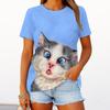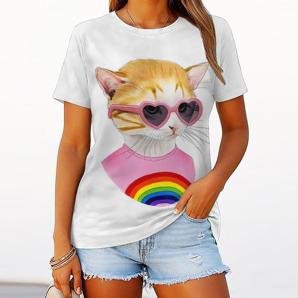 Women's T-Shirt Funny Cat Graphic Short-Sleeved Fashion Casual Oversized Round Neck Women's Summer Clothing