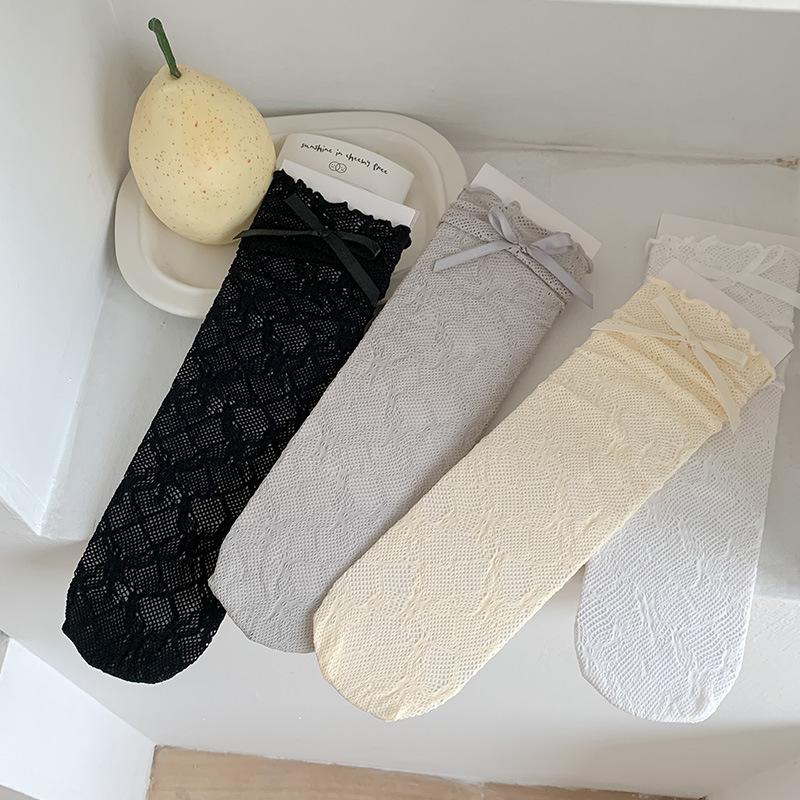 Women's Summer Thin Sweet Bowknot Wooden Ear Edge Mesh Breathable Lace Ballet Wind Drum Pile Socks