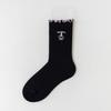 Cartoon-embroidered Socks for Women, Spring and Autumn, Thin and Versatile Mid-calf Socks, Sweet Black Ear-trimmed Pile Socks