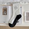 Cartoon Socks for Girls, Cute Autumn Embroidered Little Cat, Mid-calf Socks, Color-blocked School Style, Pile Socks, Boneless