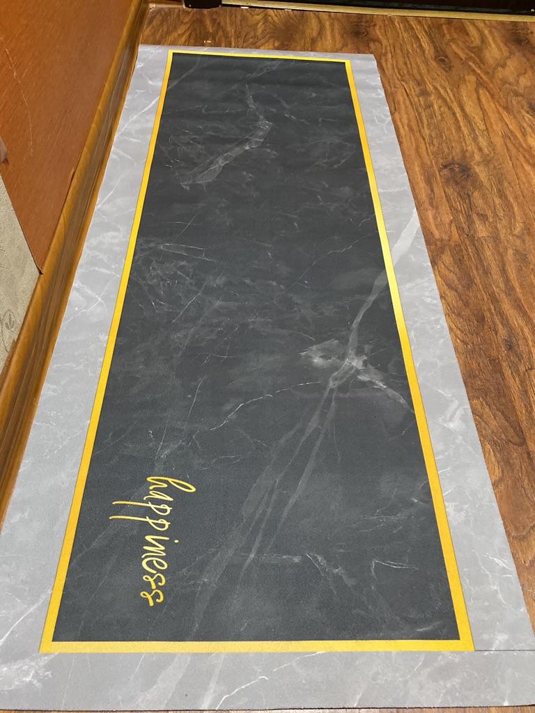 Very good mat, I put it in the kitchen in front of the sink and dishwasher, the drops are not visible, it traps crumbs and looks rich.