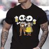 Skeleton Couple Drinking Beer Print T-shirts Beer Lover Essential Summer Clothes Skull Cheers Beers Print Fashion Mens T-shirt