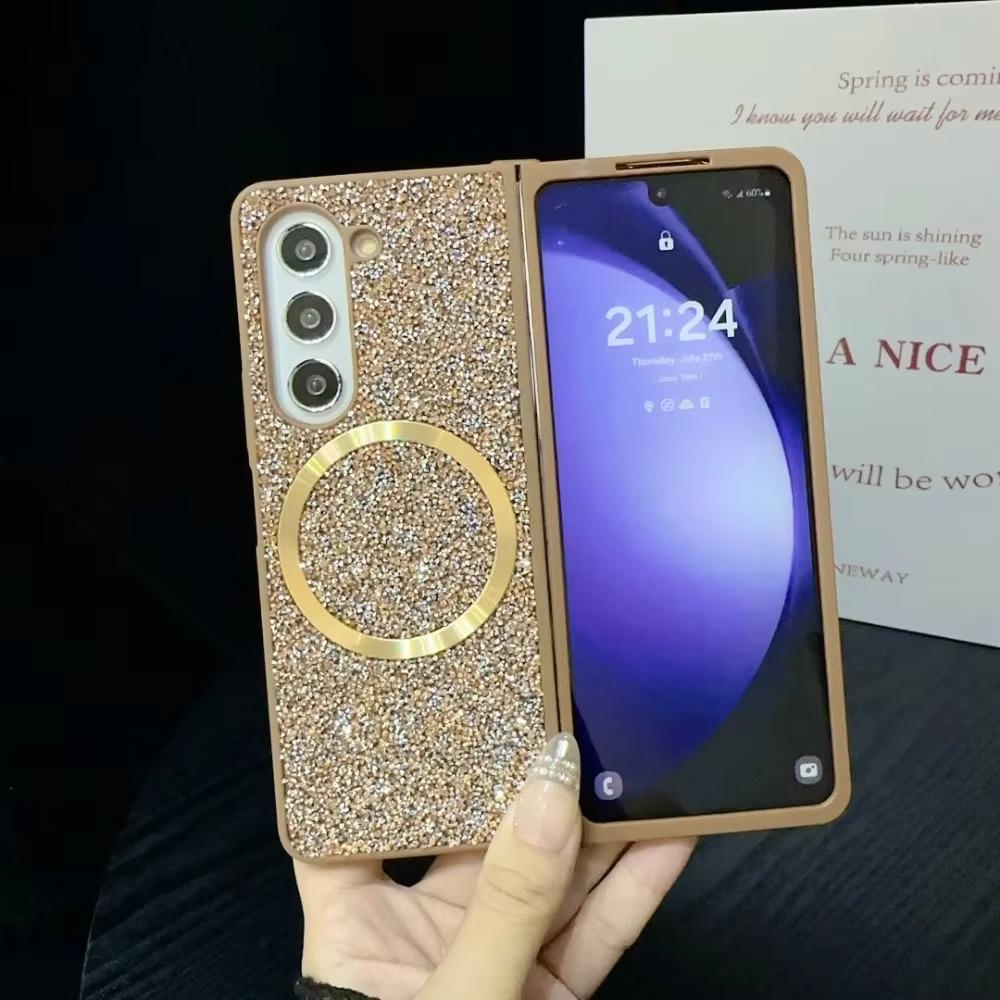High-end Luxury Magsafe Magnetic Sparkling Diamond Brilliant Phone Case for Samsung Galaxy Z Fold 7 6 5 4 3 TPU Soft Edge Cover