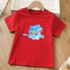 Blue Tiger Printed Children T-shirt Summer Girls Casual Loose Kawaii O-Neck Short Sleeve Colorful Tops Children Clothing