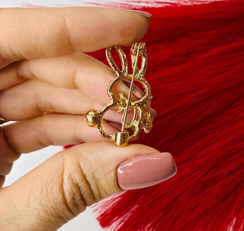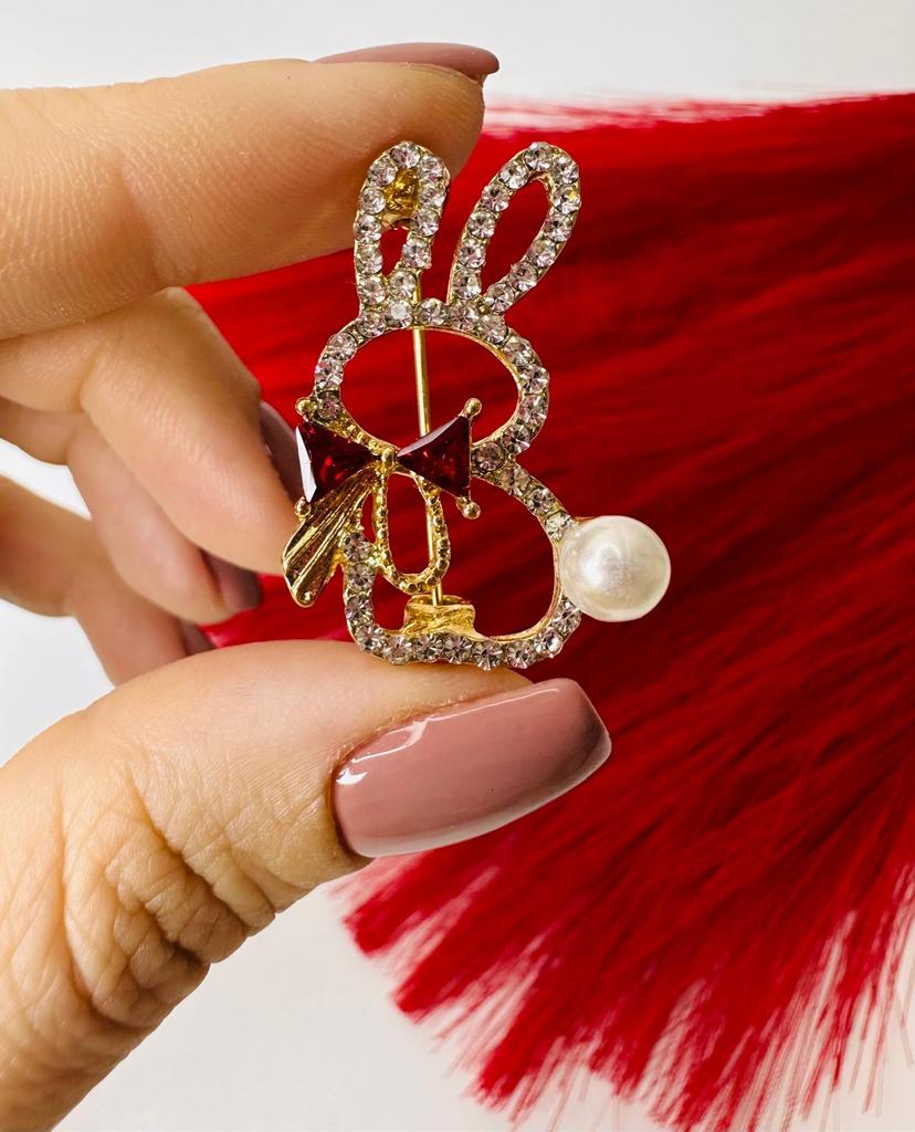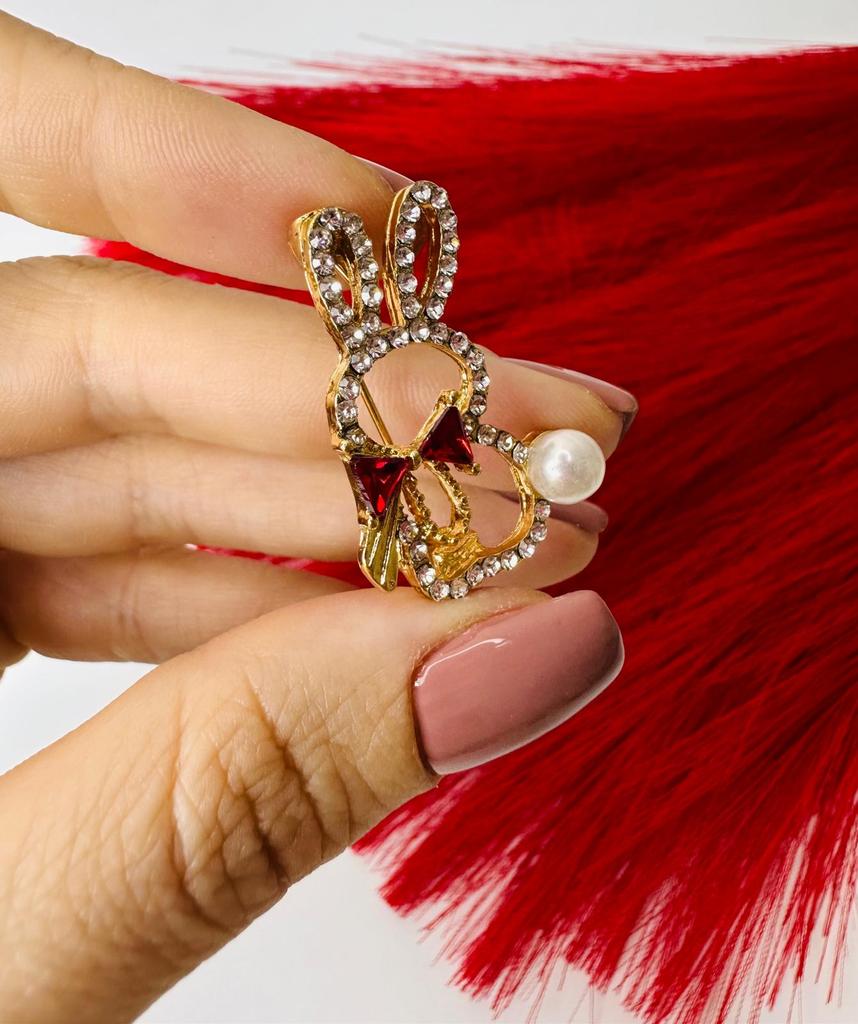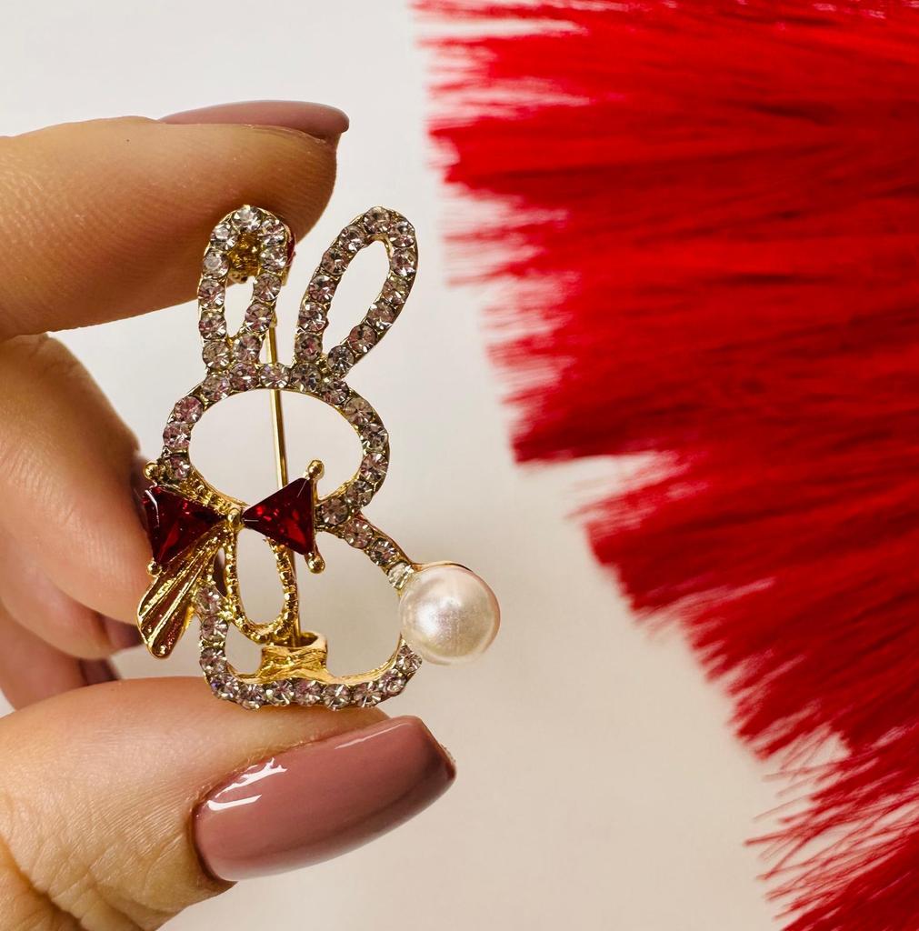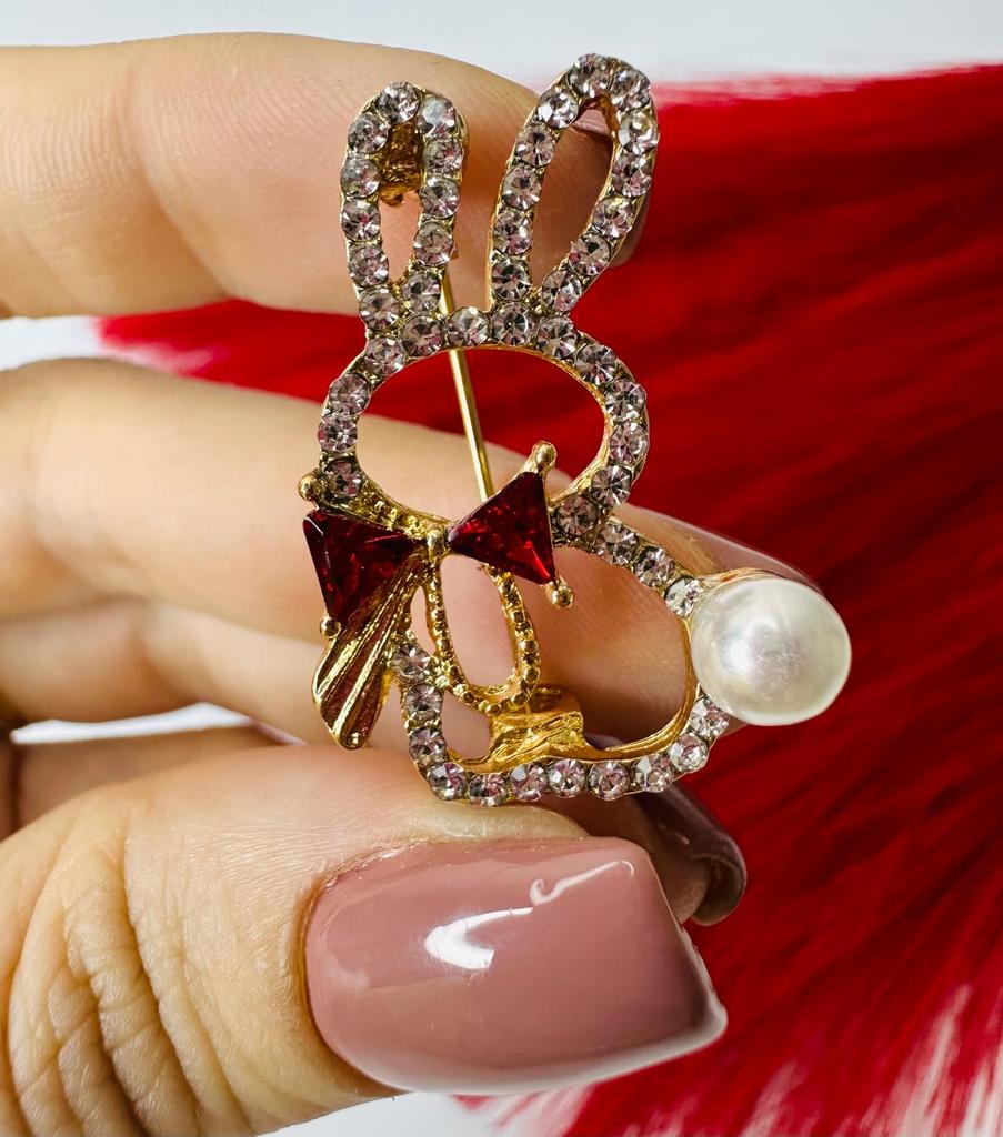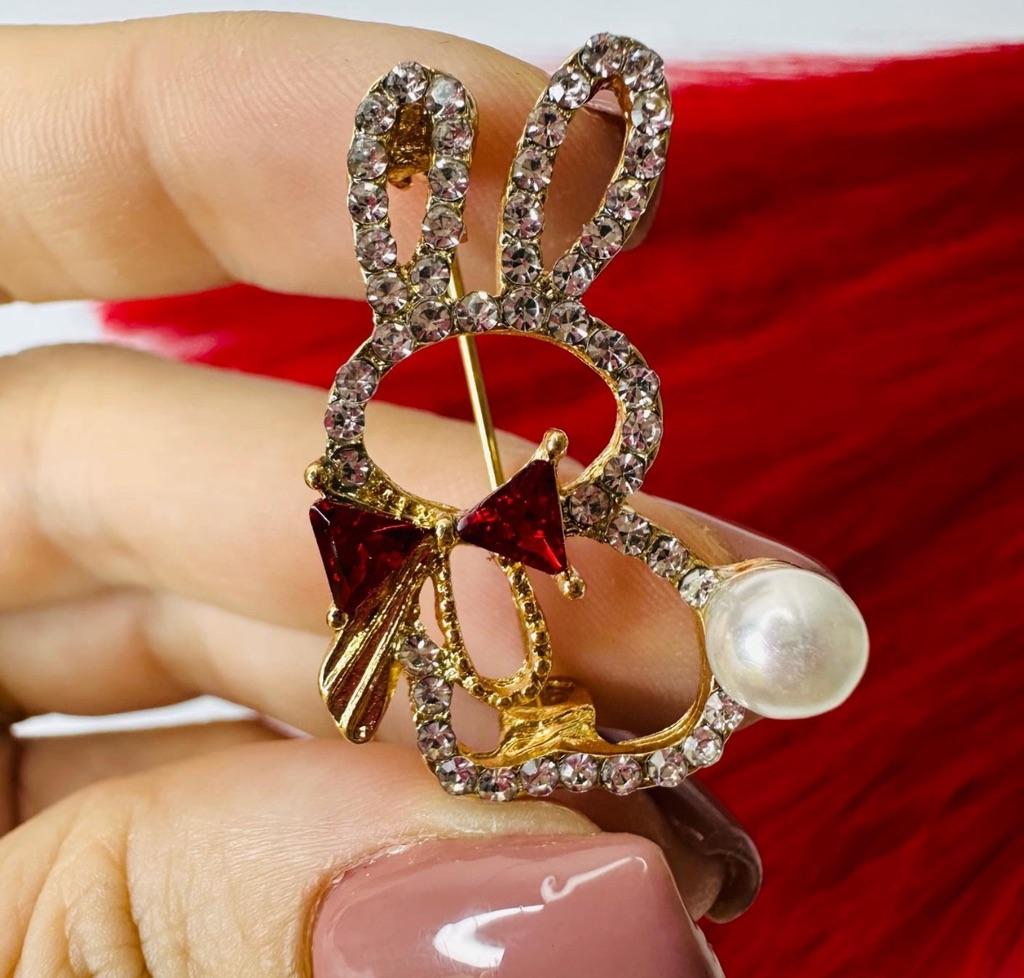 Cute Rabbit Bow Tie High-end Anti-glare Brooch Women's Rhinestone Brooch Pin Collar Pin