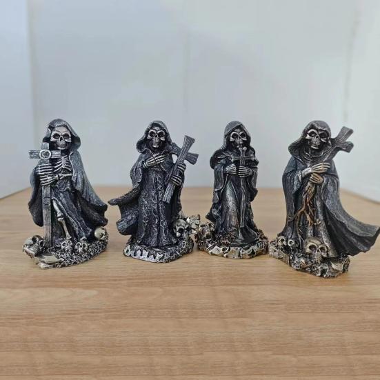 Enhance the ambiance of your home or office with this unique grim reaper statue. Crafted from durable resin material, this statue features a distinctive texture and is easy to maintain. Perfect for displaying on a bookshelf, desk, or entrance, it adds a touch of mystery to any space.