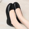 Women's Black Leather Non-Slip Flat Work Shoes - Comfortable Round Toe Design for Long Standing Hours, Soft Sole Professional Footwear.