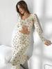 Discover comfort and style with this European & American style autumn/winter pajama set for women. Crafted from high-quality polyester, this set features a sexy yet casual design perfect for those cozy nights in. The long sleeves are accentuated with ribbed stripes, adding a touch of sophistication to your loungewear collection. Ideal for cooler weather, this set provides warmth without compromising on elegance.