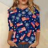 Women's Fashion Casual Three-quarter Sleeve Independence Day Printed Round Neck Top