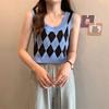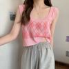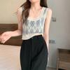 Summer Knitted Argyle Versatile Short Camisole Tank Women's Slim Outerwear Inner Top