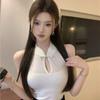 Buttoned Hollow-out Halter Sleeveless Knitted Vest Women's Summer Hot Girl Slim Fit Inner Wear Chinese Style Top Outerwear