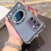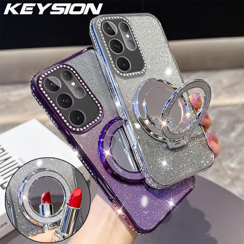 KEYSION Glitter Jewelled Magnetic Phone Case for Samsung Galaxy S25 Ultra 5G S24+ Plus S23 FE Makeup Mirror Stand Shockproof Cover