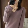 2025 Autumn Winter V-neck Knitted Pullover Women Sweater New Solid Color Fashion Elegant Casual Bottoming Shirt Thin Solid Color Simple Clothing