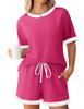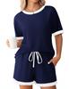 Women's Ribbed Short Sleeve Top and Shorts Set, Casual Loungewear with Contrast Trim, Multiple Color Options