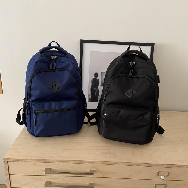 Niche Casual Double Backpack Schoolbag Waterproof Travel Bag Computer Bag Large Capacity Student Bag Black Simple