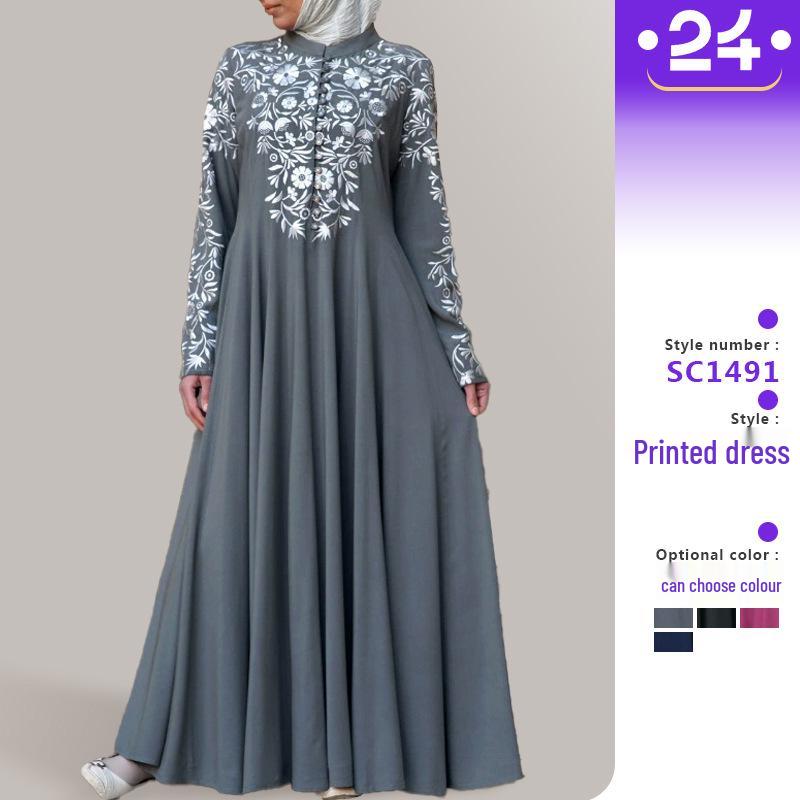 This elegant long-sleeve swing skirt is designed with a stand collar and features an eye-catching ethnic style print. Made from high-quality polyester, the skirt offers both comfort and durability. Its unique design and vibrant patterns make it a perfect choice for women seeking a blend of tradition and contemporary fashion. Ideal for various occasions, this skirt adds a touch of sophistication and cultural flair to any outfit.