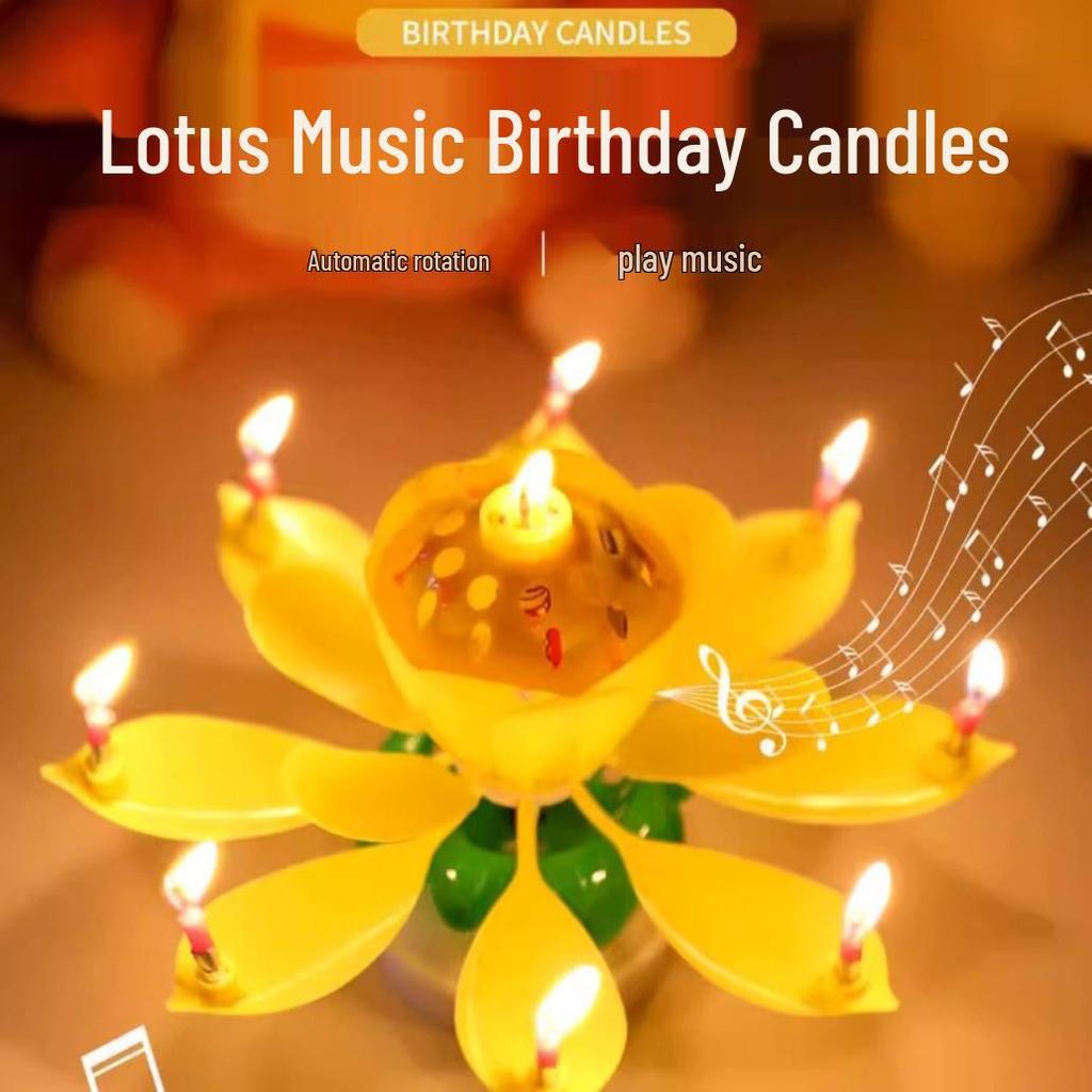 Lotus Rotating Music Birthday Candle for Cake